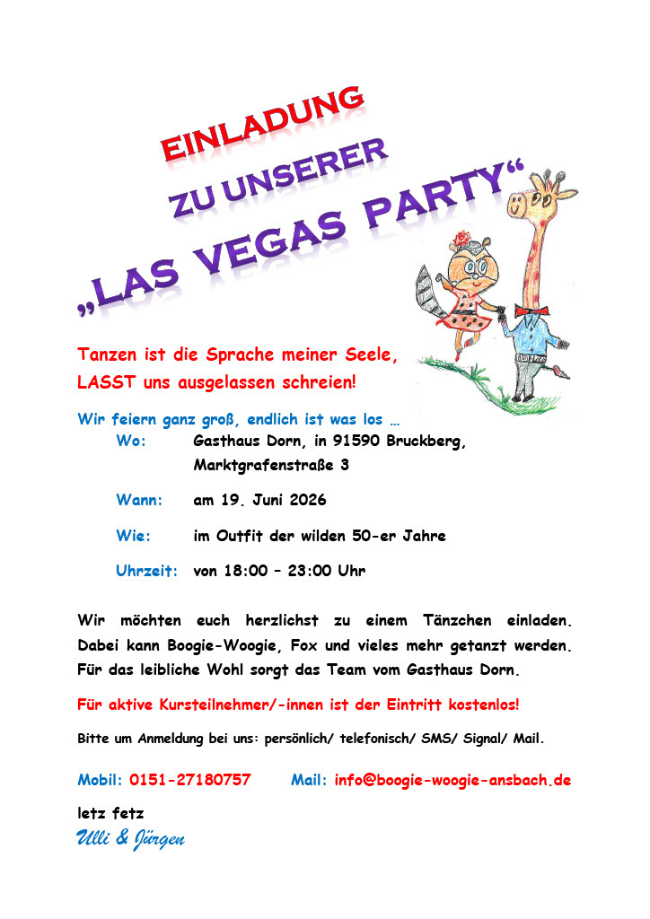 - Boogie Woogie Tanztraining für ALLE Fortgeschrittenen. Neue Paare bitten wir vorher kurz Kontakt mit uns aufzunehmen.